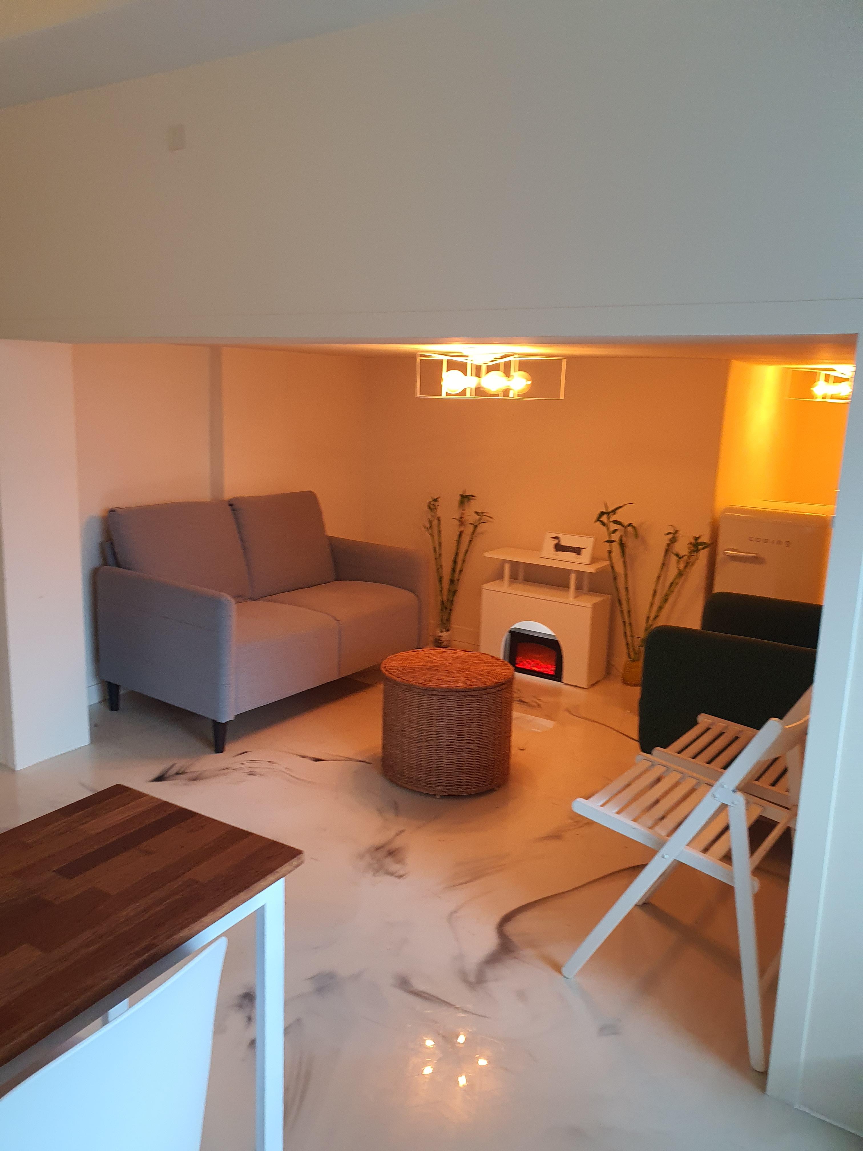 강남역파티룸대여 역삼세미나실 큰 홀 옆에는 부드러운 조명이 설치되어 있는 아늑한 공간이 있는데요. 소파와 냉장고가 있어 간단하게 다과를 즐기시거나 담소를 나누는 공간으로 사용하시기에 너무 좋게 따뜻한 분위기로 꾸며져 있습니다.