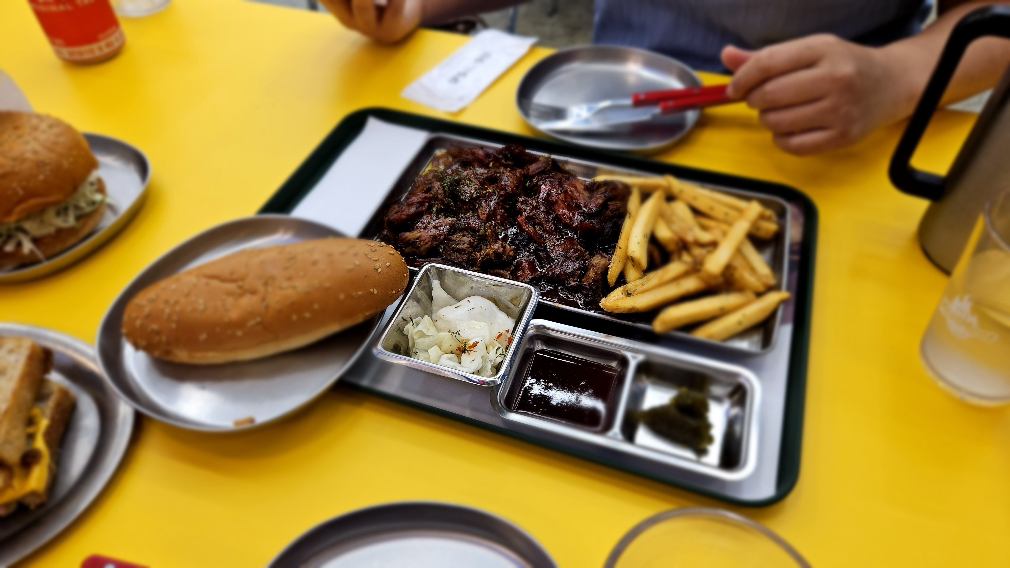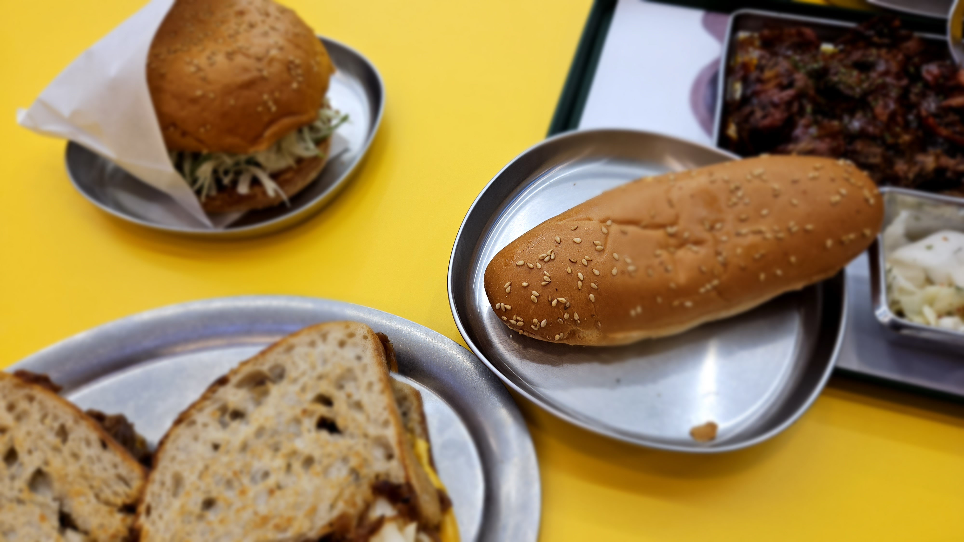 또 다른 인기 메뉴로는 '뉴욕 타임스퀘어 거리의 맛집 방식으로 재현한 할라피뇨 풀드포크버거'가 있습니다. 오랜 시간 정성스럽게 훈연한 풀드포크와 매콤달콤한 할라피뇨 소스의 조화가 일품이어서 식사와 안주 모두에 적합합니다. 부드러운 고기와 신선한 야채, 그리고 특제 소스가 어우러져 풍부한 맛을 선사합니다.