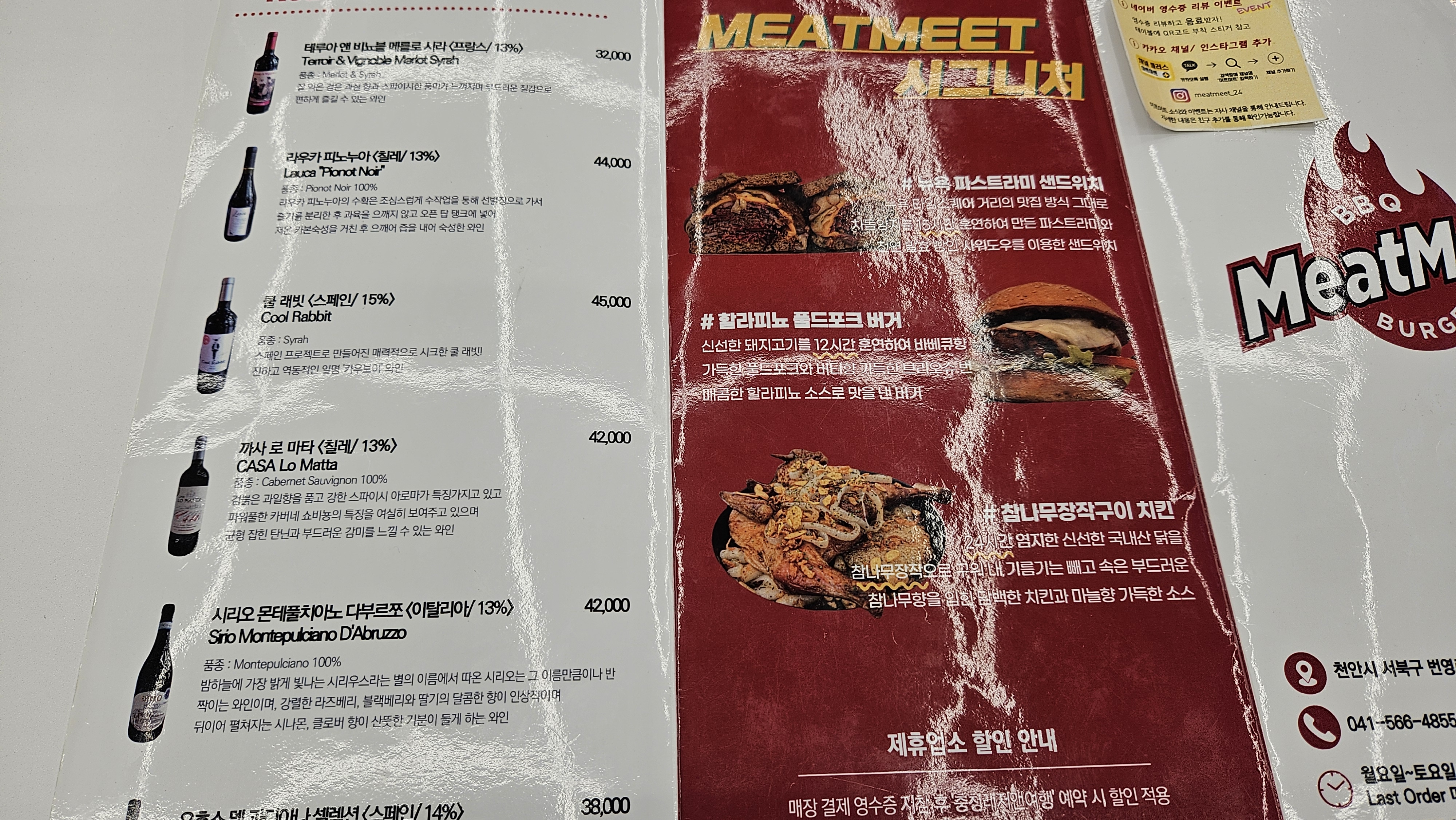 미트미트는 다양한 고기 요리뿐만 아니라 와인도 함께 즐길 수 있어, 폭넓은 선택의 폭을 제공합니다. 이는 일반적인 치킨 바베큐 집과는 차별화된 특징으로, 다양한 취향을 가진 사람들이 모이는 회식이나 단체 모임에 특히 적합합니다. 와인과 함께 즐기는 장작구이 요리는 색다른 경험을 선사할 것입니다.