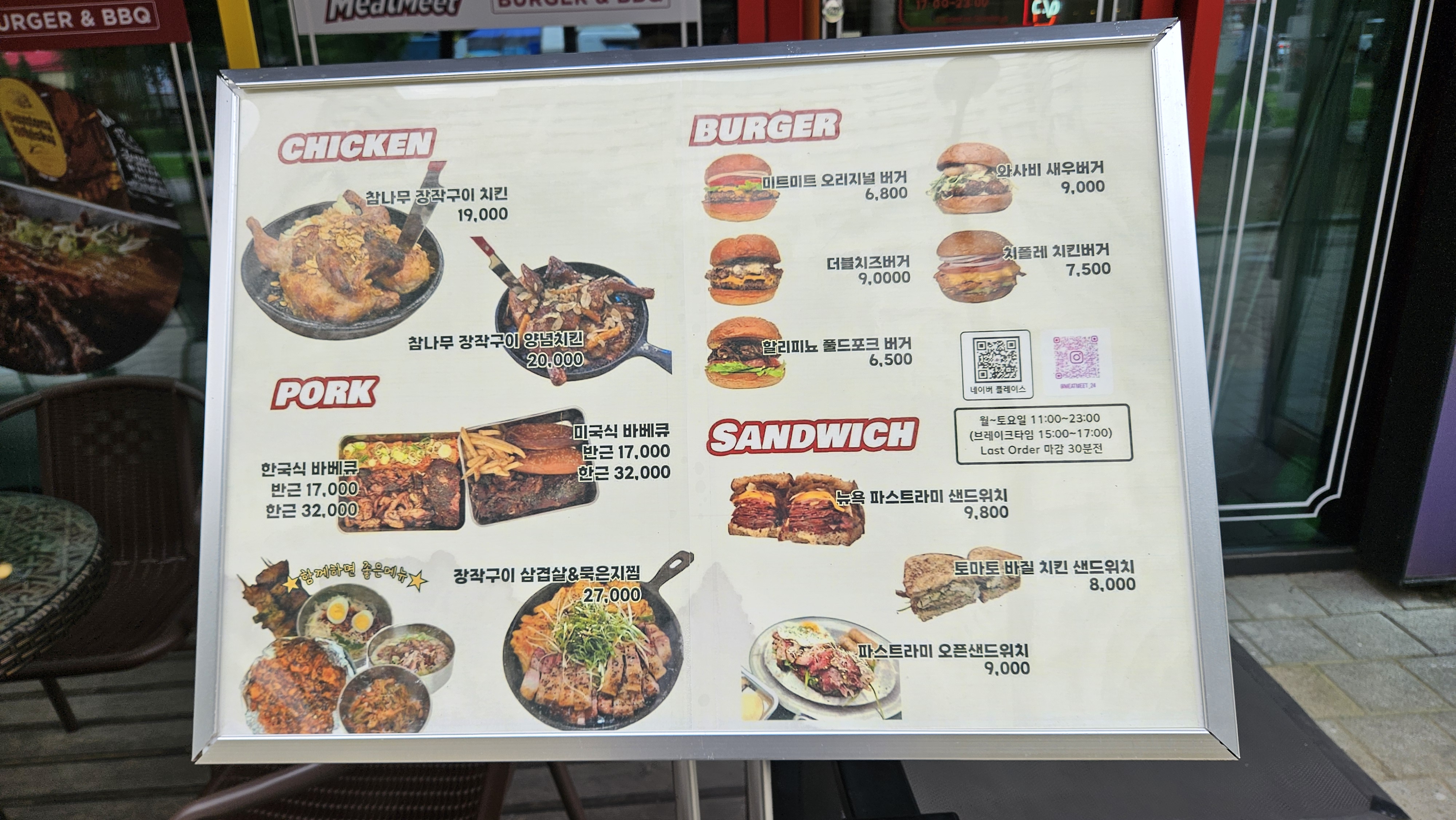 미트미트의 가장 큰 장점은 뛰어난 접근성과 편의성입니다. CGV 건물 1층에 위치해 찾기 쉽고, 넉넉한 주차 공간을 확보하고 있어 차량 이용 시에도 불편함이 없습니다. 영업시간은 매일 11:00부터 23:00까지이며, 매주 일요일은 휴무입니다. 브레이크 타임(15:00-17:00)과 라스트 오더(22:30) 시간을 참고하면 더욱 편리하게 이용할 수 있습니다.