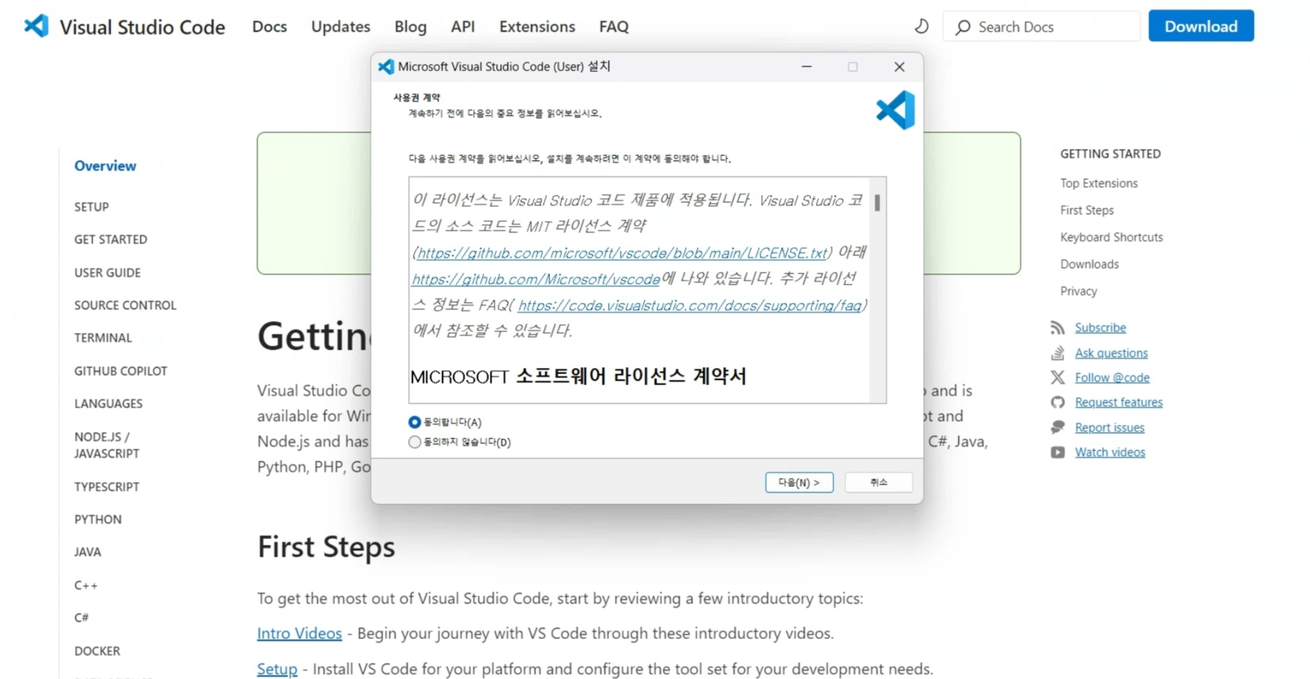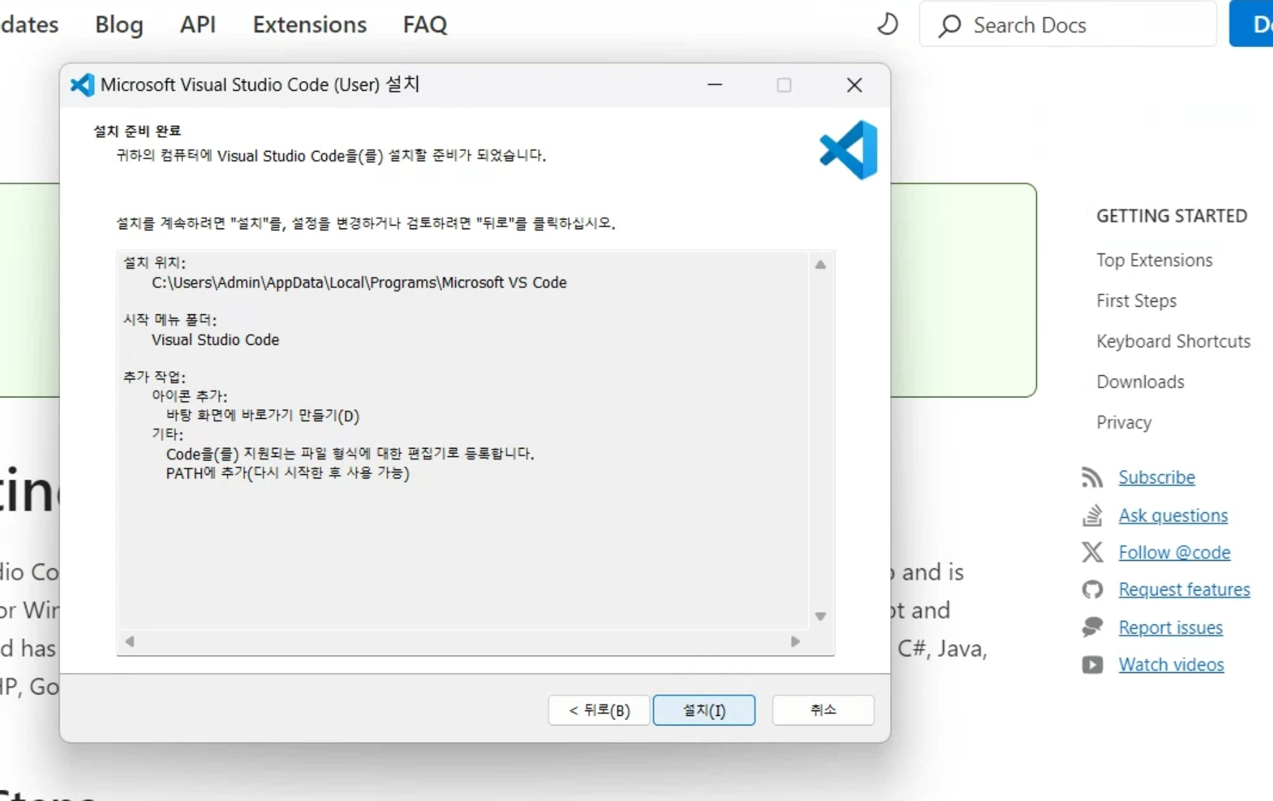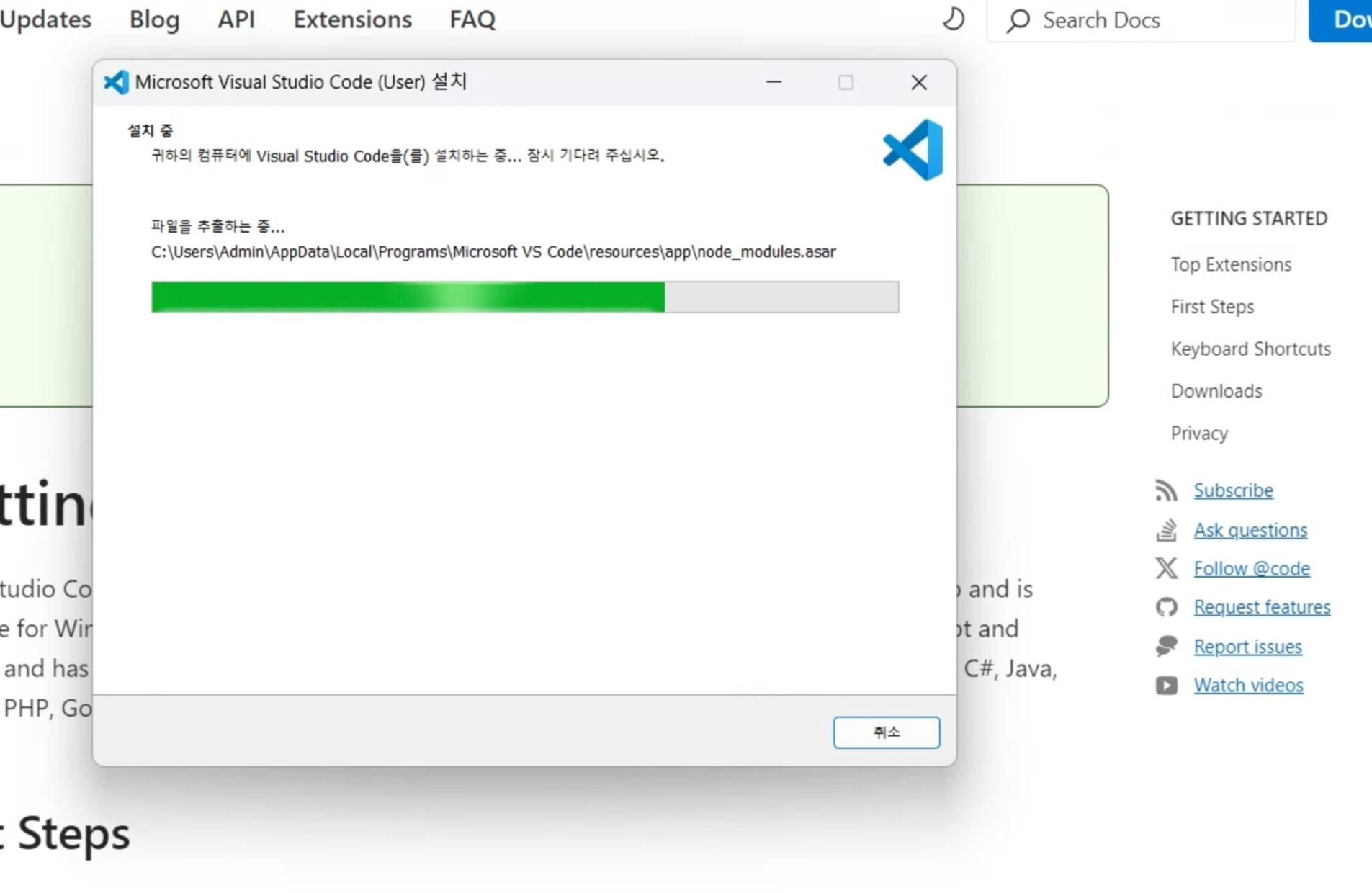 파일 다운로드가 완료되면 설치를 시작합니다.