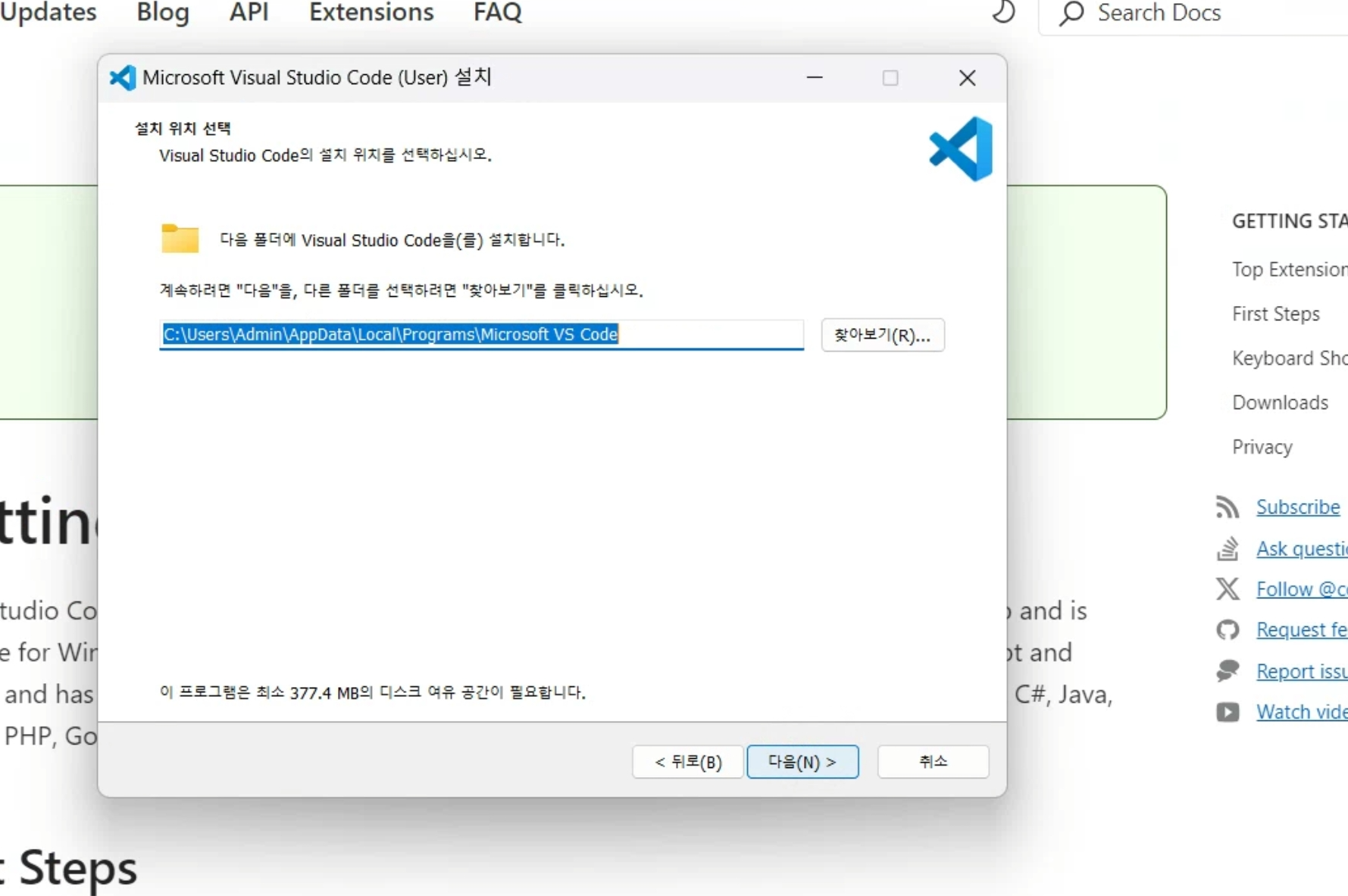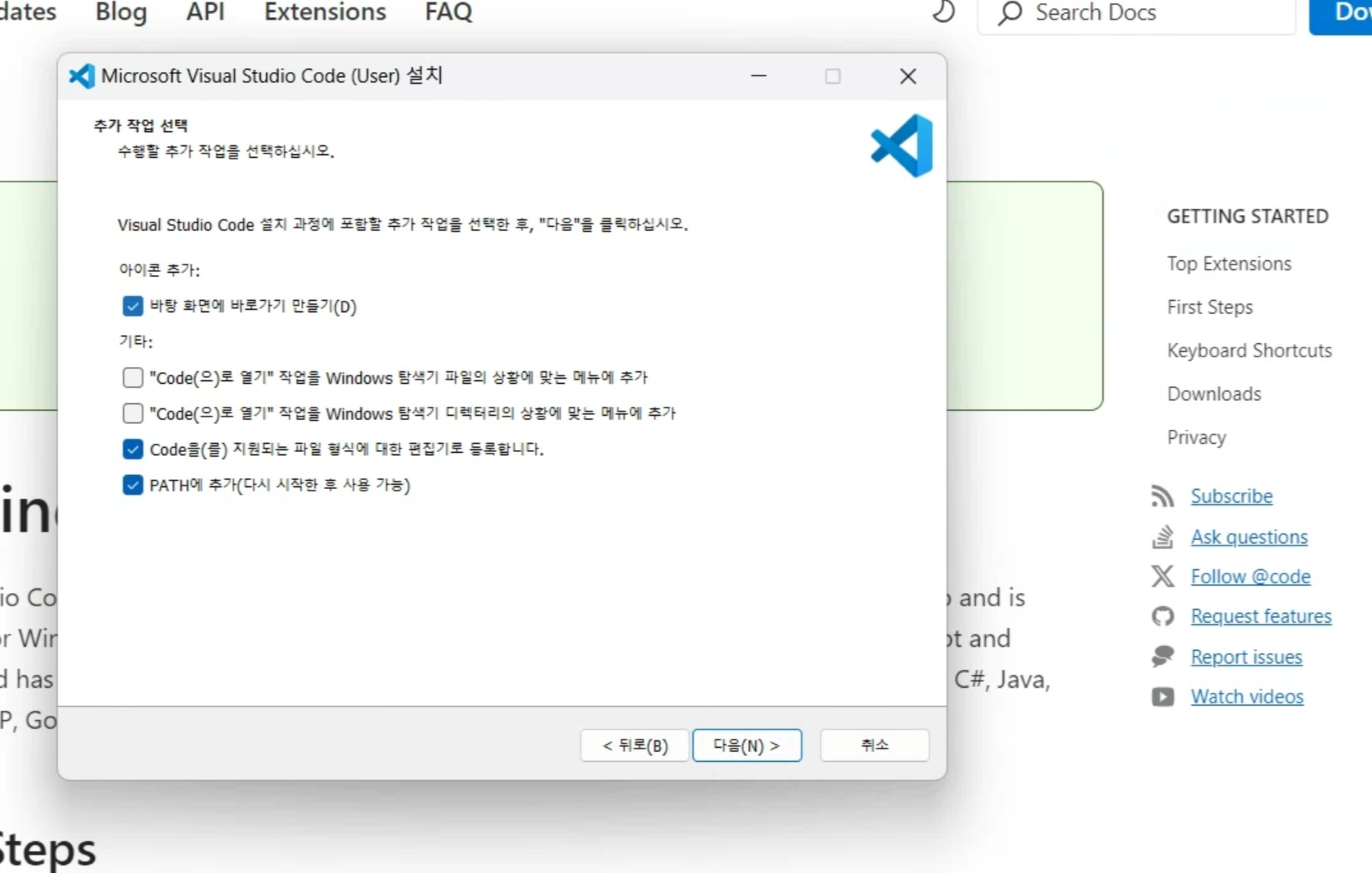 추가 작업 선택에서는 아래와 같이 PATH 추가 부분까지 체크해줍니다.