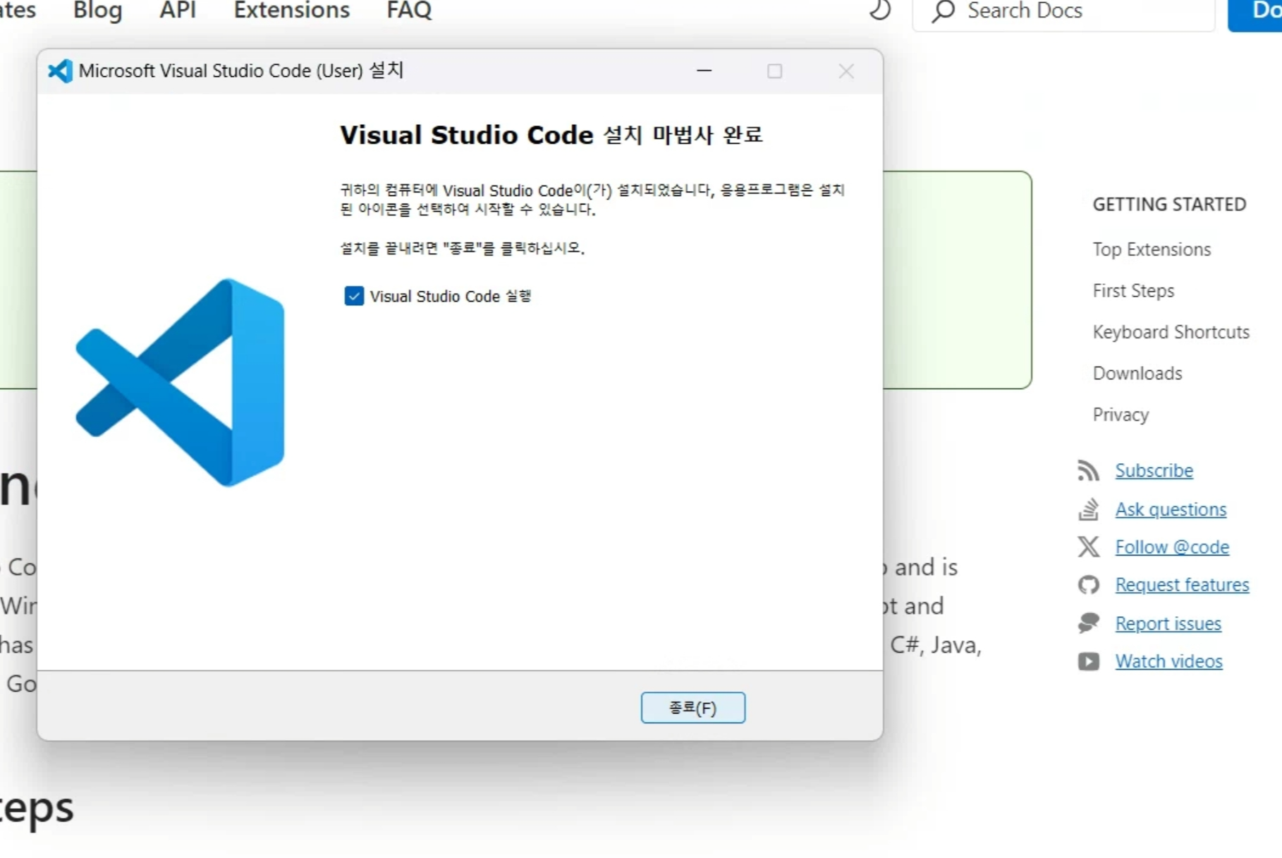 이제 Visual studio code 설치가 완료되었습니다. 다음으로 화면보기 설정을 하시고 python 이용을 위한 Extension 설치를 합니다.
