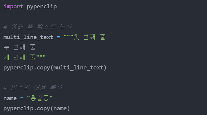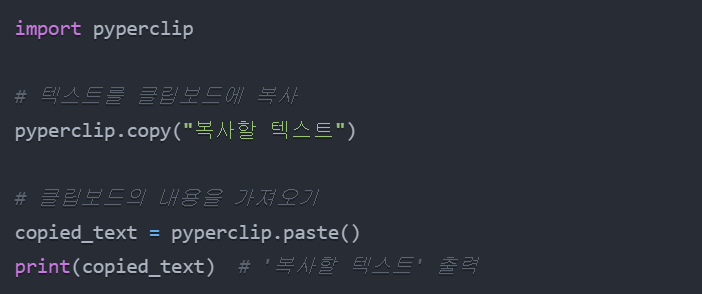 pyperclip.copy("복사할 텍스트")