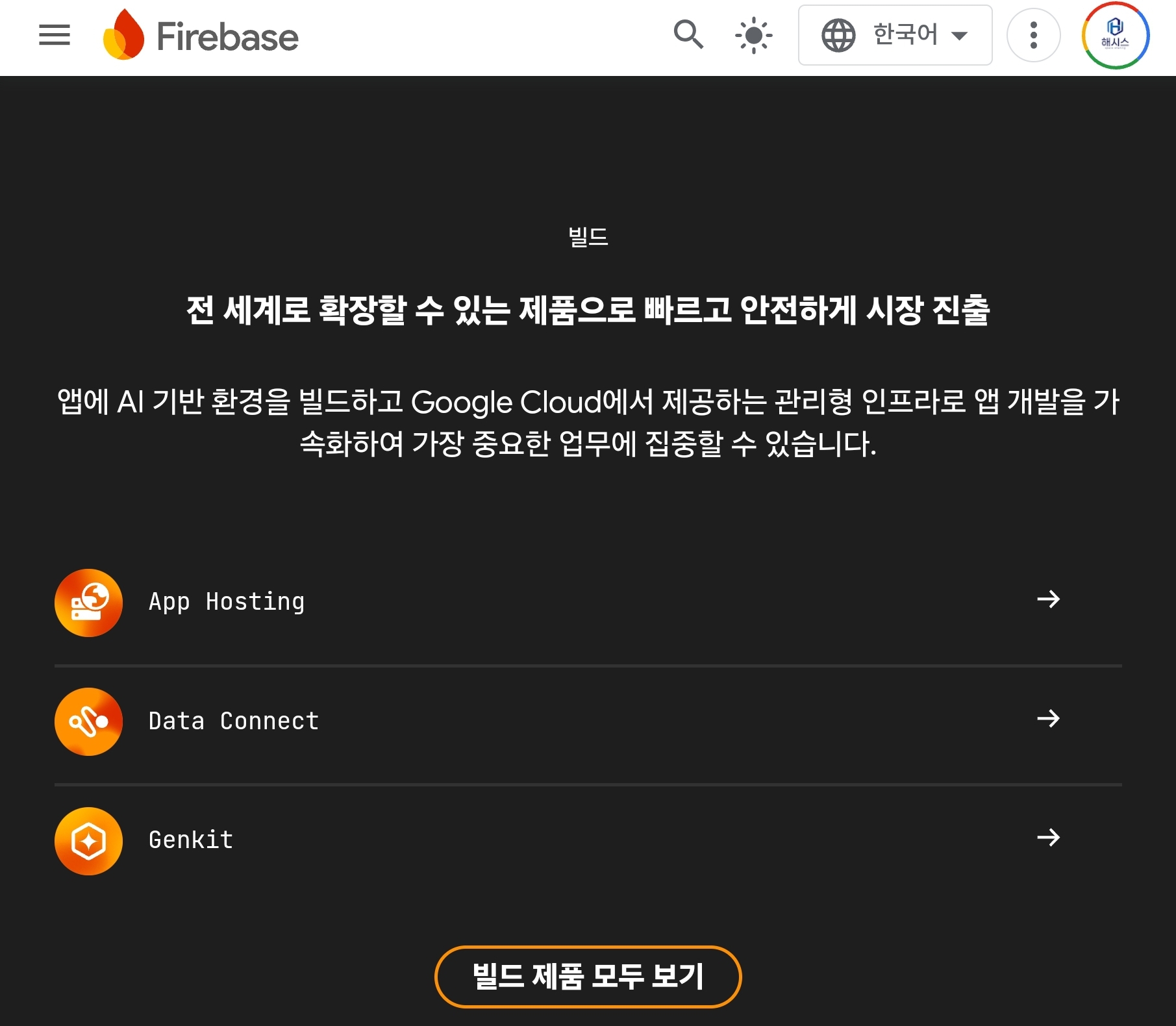 Firebase App Hosting으로 원클릭 배포 (빌드, CDN 등 자동 처리).