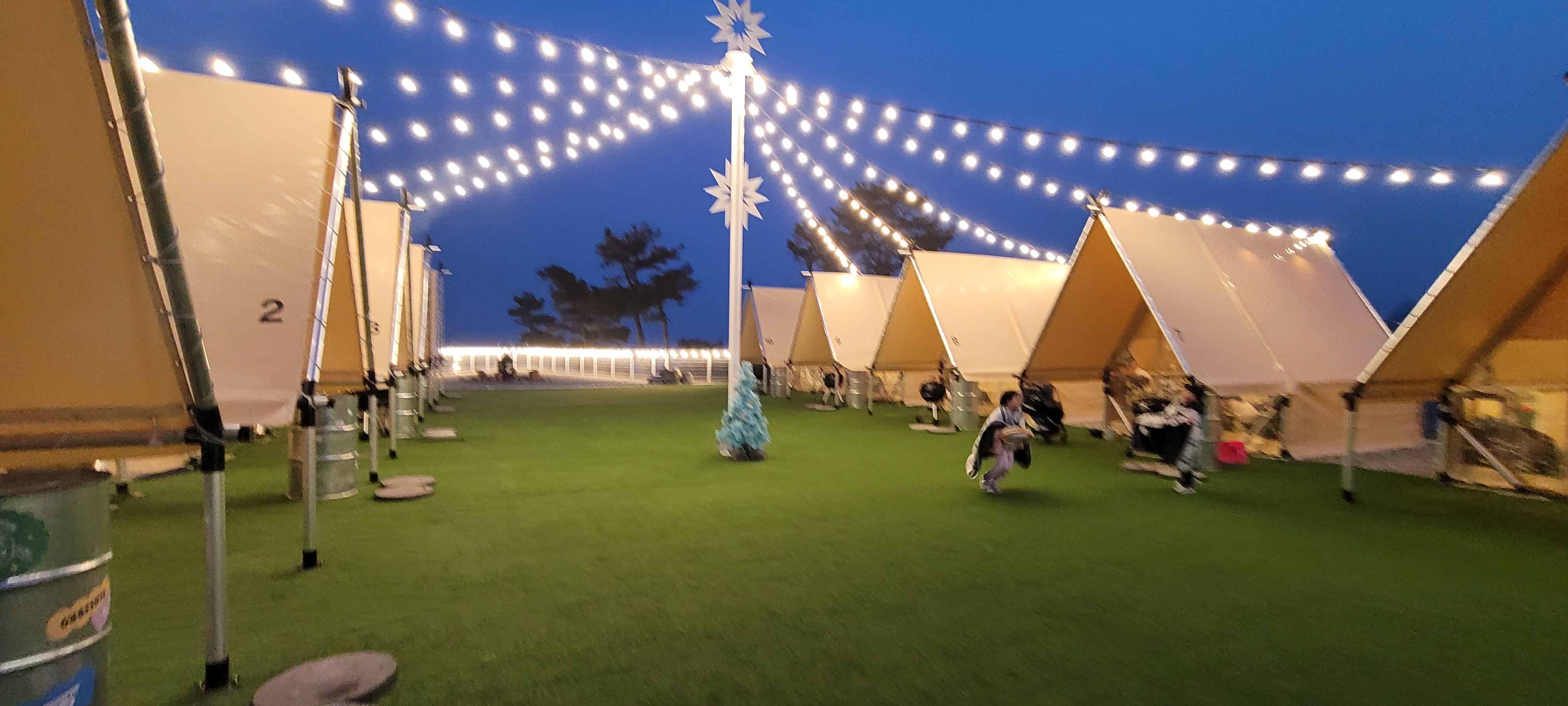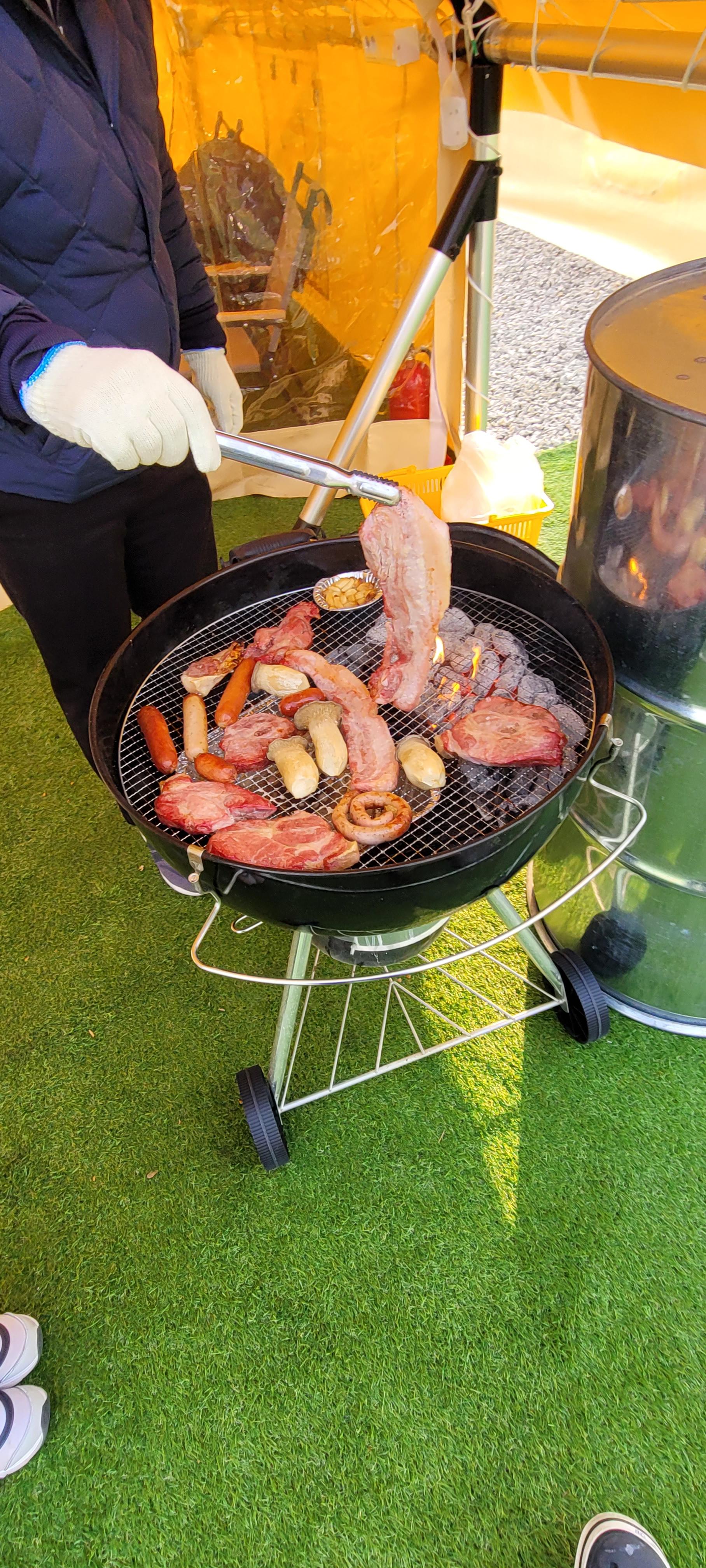 텐트로 돌아오면, 바로 맛있게 익을 고기를 준비할 시간! 사장님의 친절한 손길 덕분에, 고기와 야채 모둠을 올리고 양념 솔트를 뿌린 다음, 뚜껑을 닫기만 하면 모든 준비는 끝! 30~40분 후, 가족의 웃음소리와 함께 고기가 준비되어, 맛있는 식사와 함께 행복이 두 배가 됩니다.