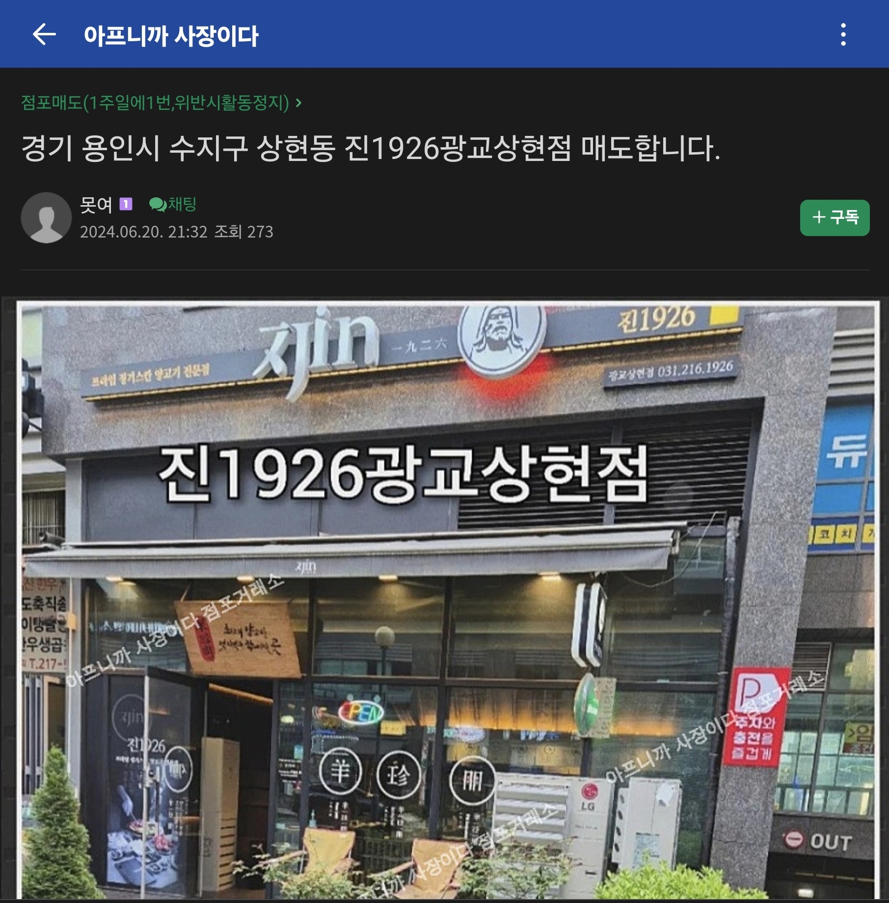 경기 용인시 수지구 상현동 진1926광교상현점 매도합니다.