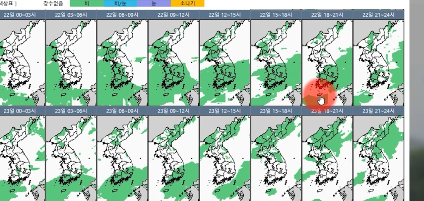 이로 인해 중부 지방의 장마철은 아직 시작되지 않았다고 말씀드릴 수 있습니다. 물론, 기온이 매우 높기 때문에 중부 지방에서는 불안정한 대기 상태로 인해 소나기가 내릴 가능성도 있습니다. 6월 23일과 24일에는 우리나라 북쪽으로 기압골이 지나가면서 일부 중부 지방에 비가 내릴 것으로 예상됩니다. 하지만 이는 일시적인 강수 패턴이기 때문에, 중부 지방의 장마철이 시작되었다고 보기에는 어렵습니다.
